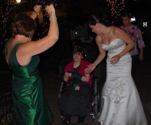 | My mom, my sister Jeannie, and I dancing at my wedding. |